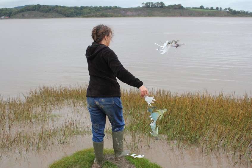 Paper dolls flying Published October 4, 2017 at 5184 × 3456 in “Tidal Village” by Luci Gorell Barnes; Purton; Mid-Severn Estuary – high tide; 23 09 2017