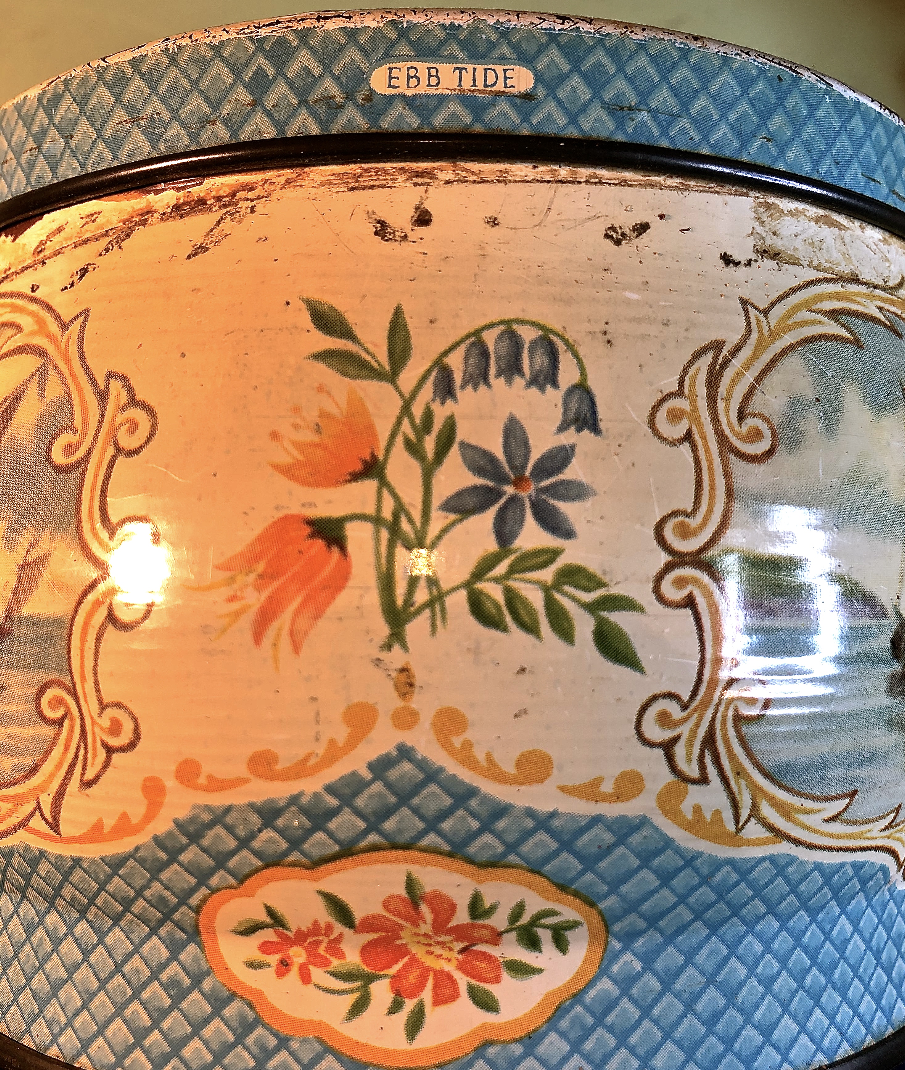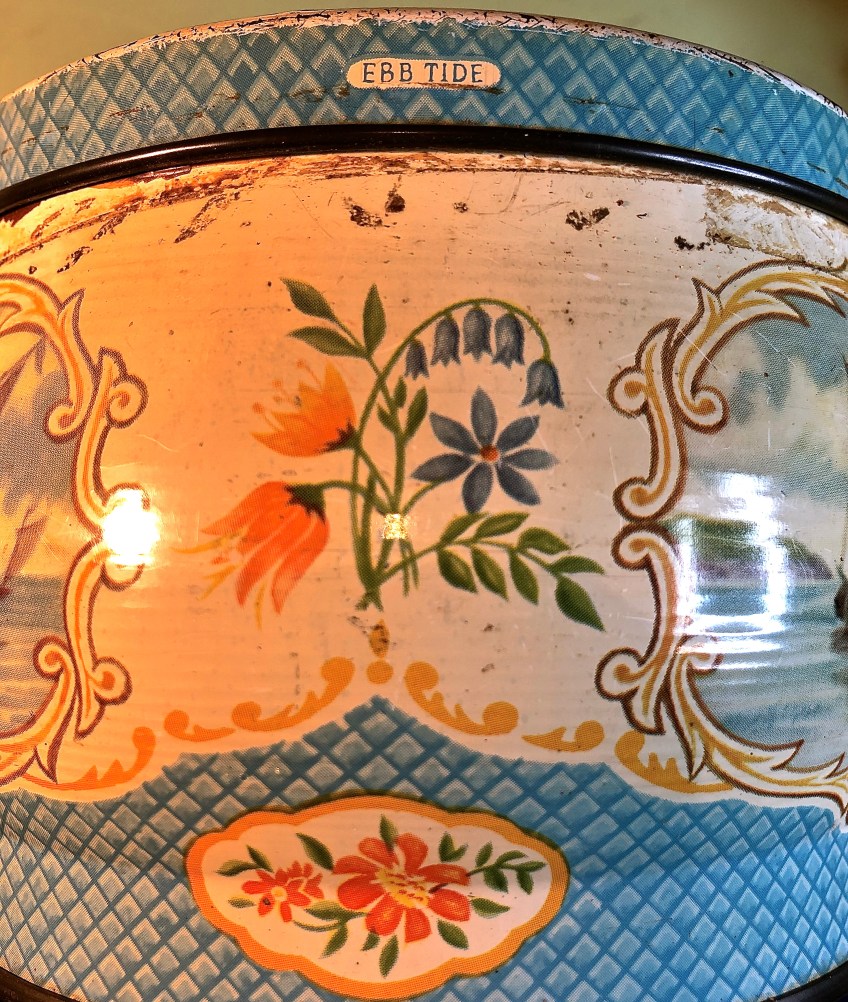 IMG_1988 Published January 20, 2020 at 2935 × 3469 in Vintage, pretty, ‘ebb tide’, Huntley and Palmer buscuit tin showing sailing scenes.