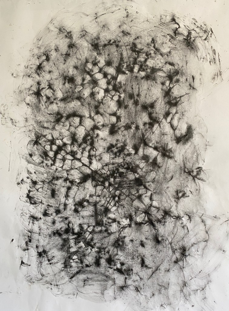 As a means of exploring the intertidal area of the Severn Estuary at low tide, near where she lives, Newnham-on-Severn, Carolyn did a kind of rubbing on paper using grafite putty on the exposed rocks. There is a blog post on her website saying more about how and why. In this she says;