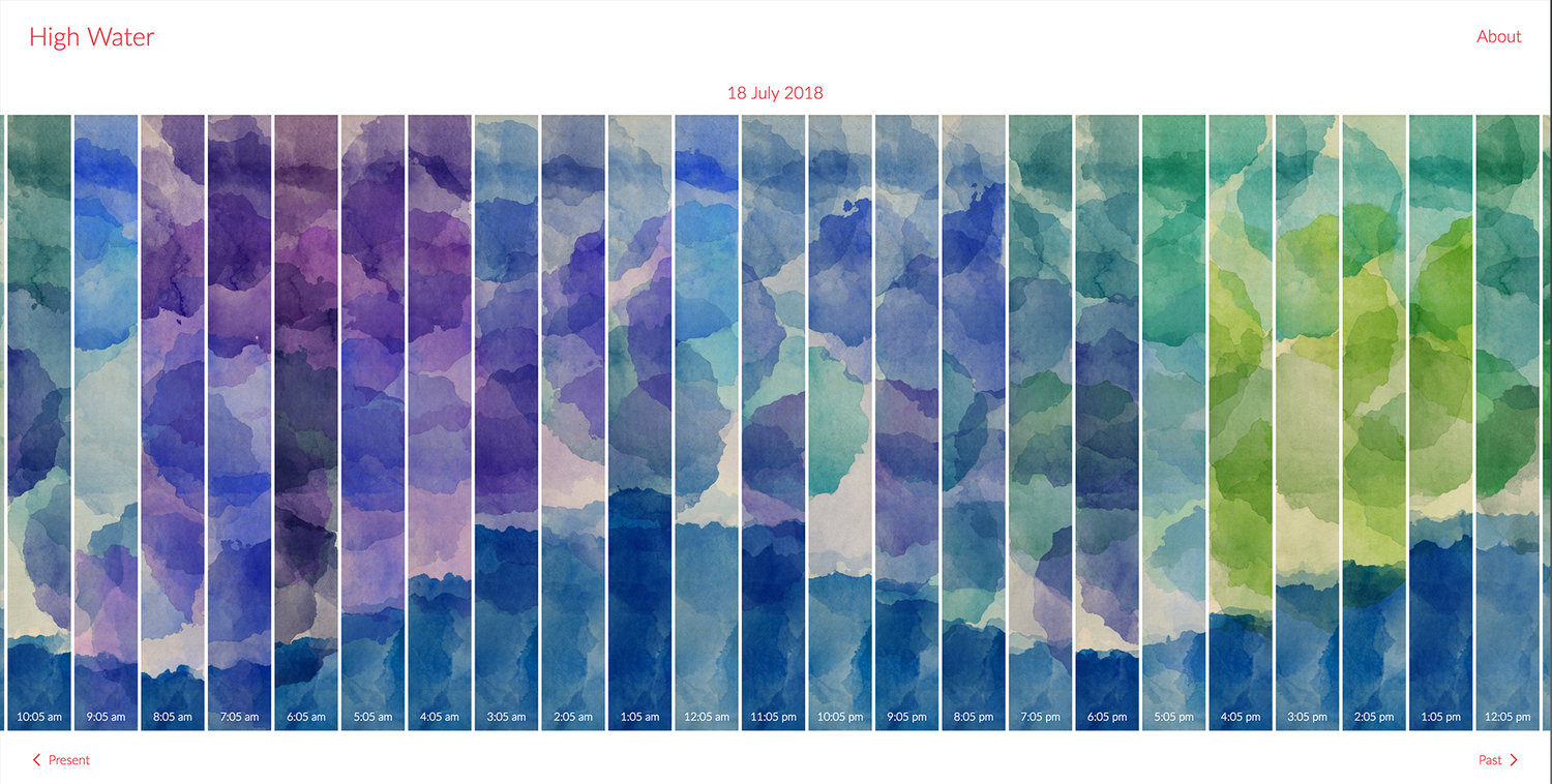 High Water interprets our changing physical world every minute of the day through changes in temperature, humidity, wind direction, precipitation levels and tidal patterns.