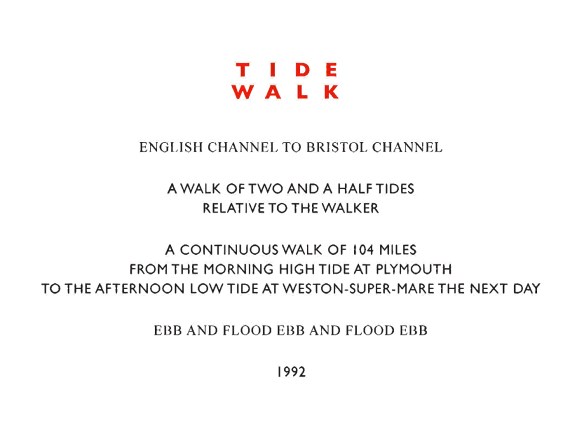 Tidal pieces include his made works such as paintings, sculptures, land art; and also in his ‘walk/text’ works.