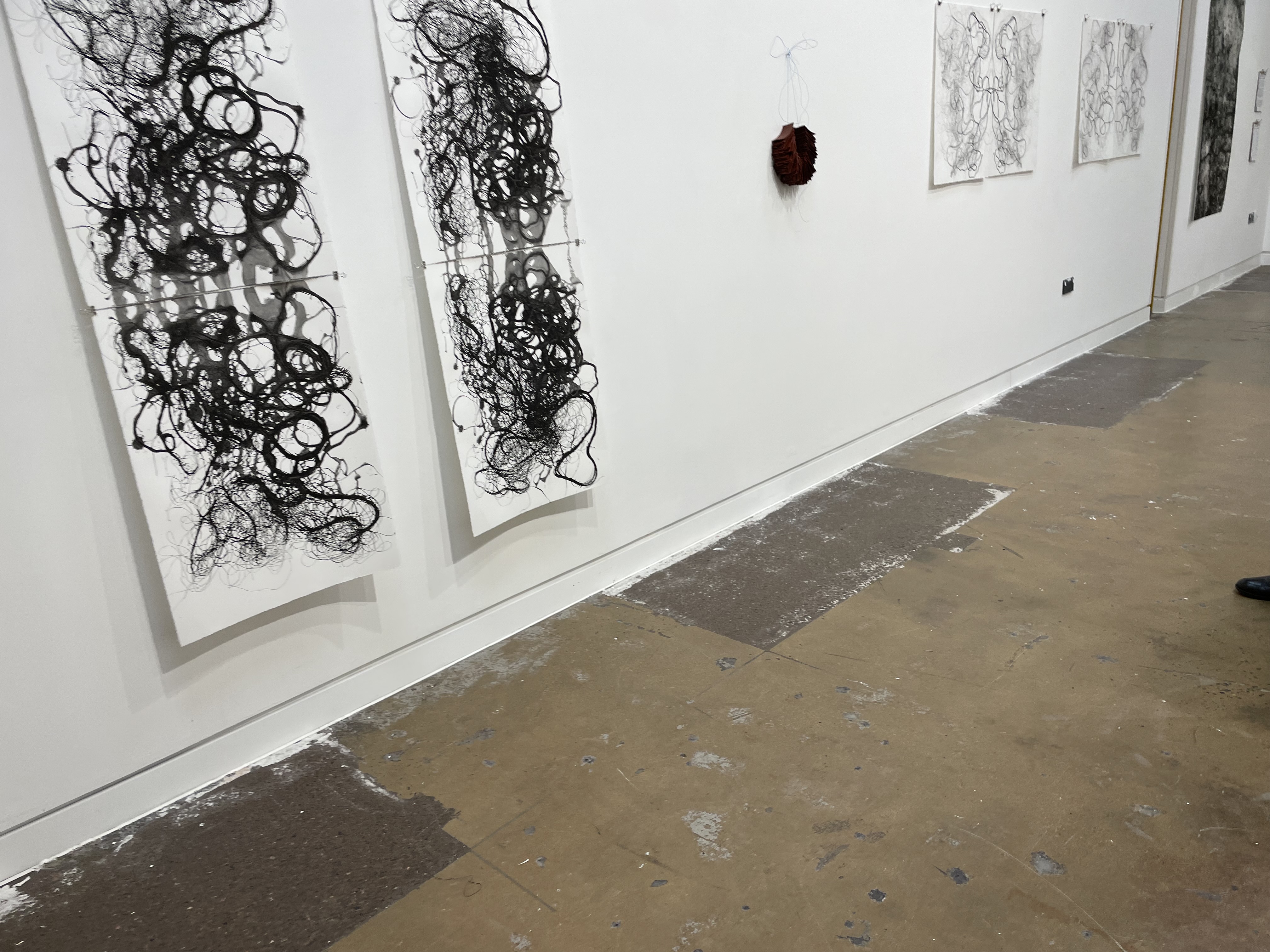 The show presents three series of painstakingly executed graphite drawings which circumnavigate the upper gallery – 52 in total – made over the course of one calendar year.