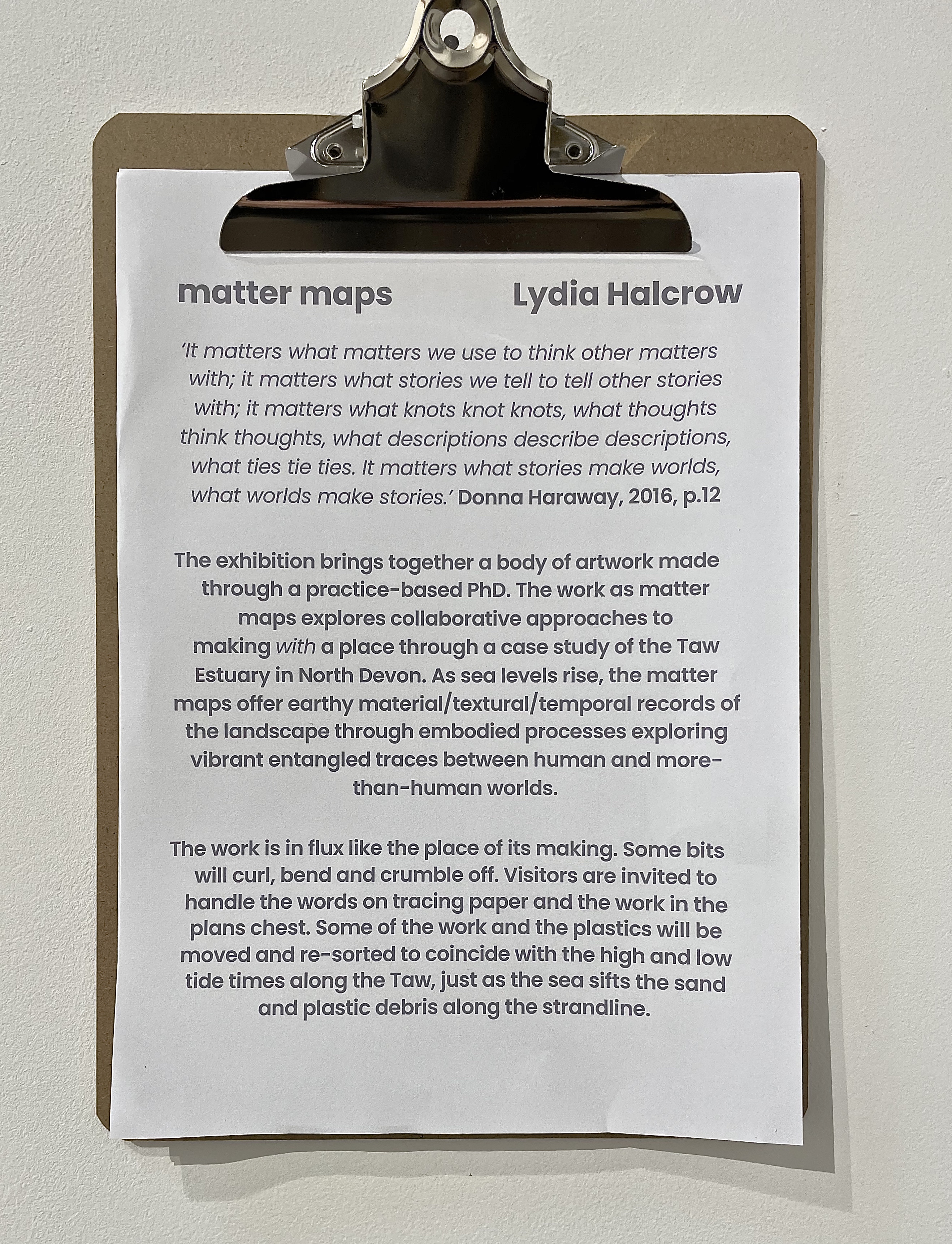 ‘Through an abstraction of flow by numerical indices, the tide is generally perceived as one predictable and regular movement. Yet, tidal predictions are based on an array of various tidal constituents involving astronomical forcing, weather conditions and many other factors, making the tide immensely complex. Behind any tide reading are variegated streams and unexpected patterns (McCully, 2007) that are permanently changing and affected by a complex ensemble, technical and organic, atmospheric and interplanetary. Led by creative practices, this research will analyse the tide as a scientific construct of a predictable and quantifiable pattern (Steinberg, 2001), proposing instead a situated approach towards tidal processes. Using case studies along the Thames, I will develop an understanding of intertidal architecture and how human and non human species collaborate with the tide. I will then develop artworks in the attempt to make the tide differently available and raise awareness.’ (Source; UKRI here).