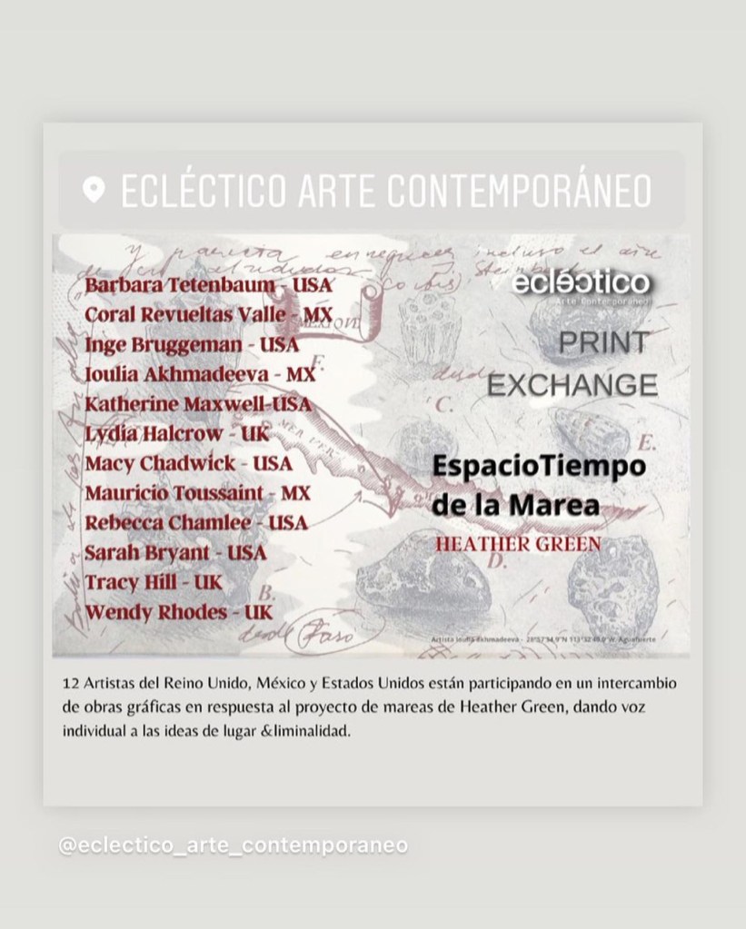 Tidal Timespace: Imprints & Palimpsests: International Print Exchange; curated by Heather Green; UK and US/Mexico; 2023 – 2024.