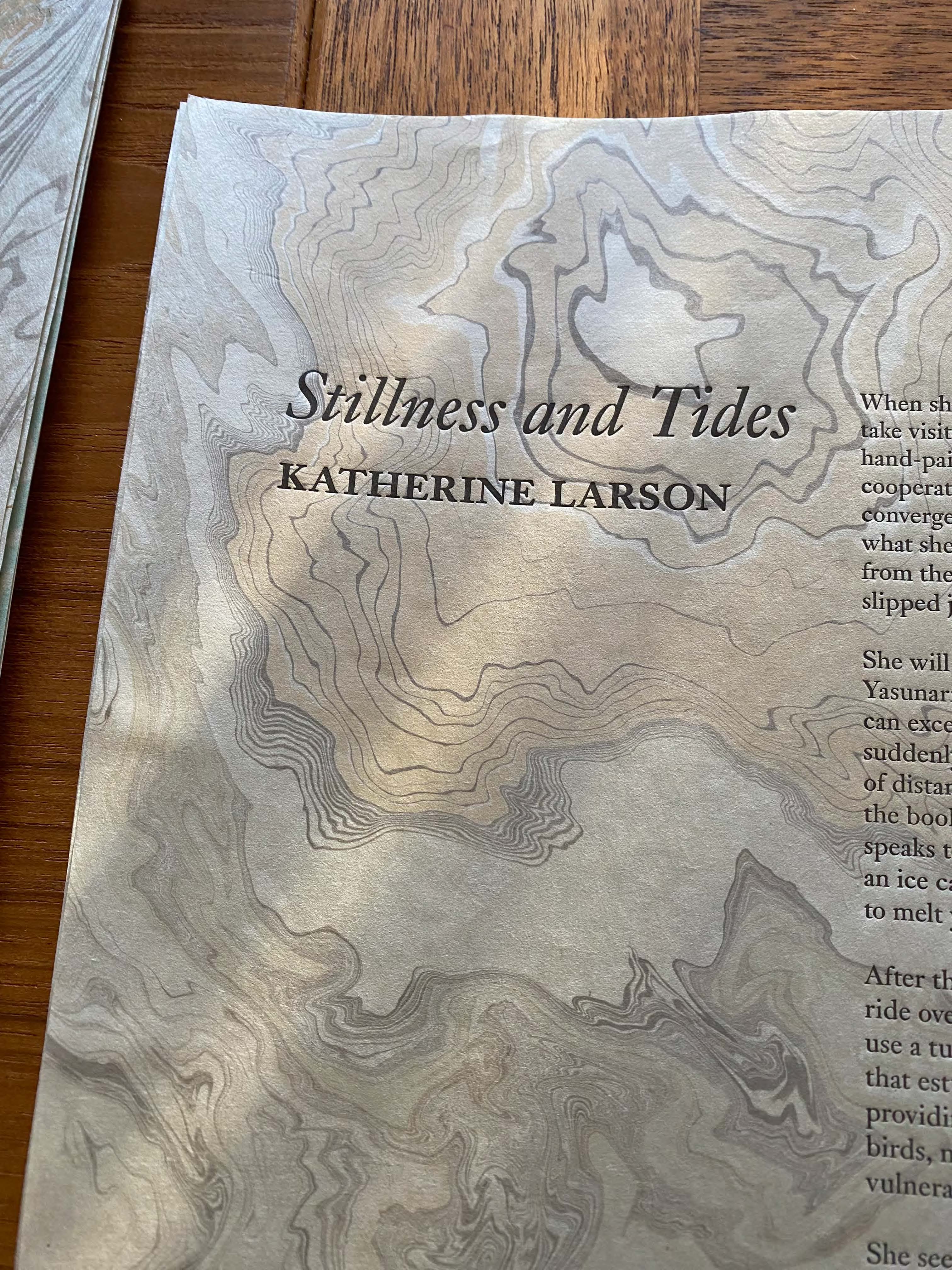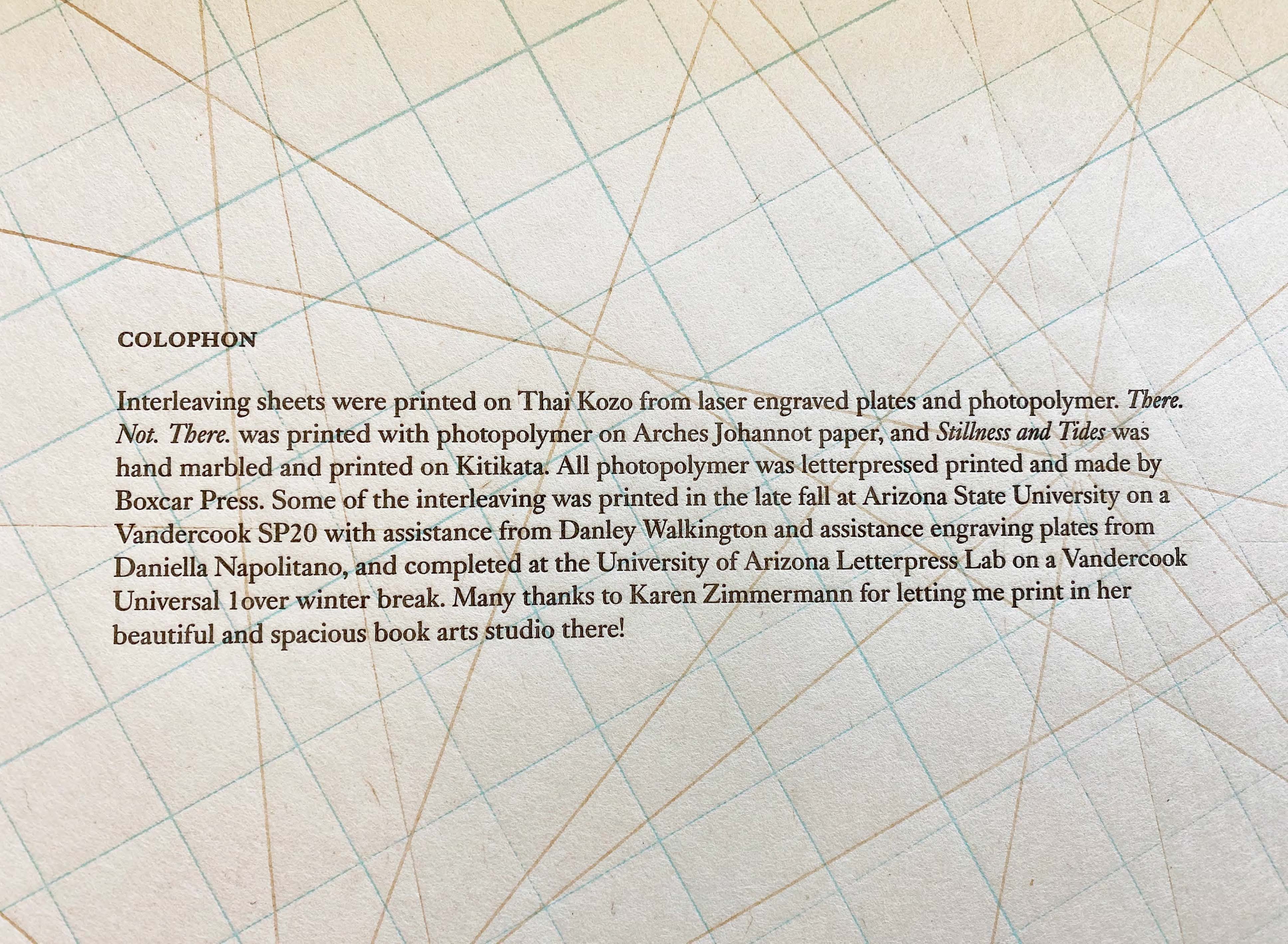 An international print exchange featuring twelve artists and two essayists from the UK, México, and the US. The collection features essays from Owain Jones and Katherine Larson, and prints by artists Ioulia Akhmadeeva, Inge Bruggeman, Sarah Bryant, Macy Chadwick, Rebbecca Chamlee, Lydia Halcrow, Tracy Hill, Kathryn Maxwell, Coral Revueltas, Wendy Rhodes, Barb Tetenbaum, and Mauricio Toussaint. Each responded to the title of Heather Green’s larger tides project, interpreting it in their own voice. Title, contents, bio, statements and colophon handprinted as interleaving, and essays are hand printed with photopolymer and hand marbling. Print size: 12″x18″, Edition size: 20. See the project website here.