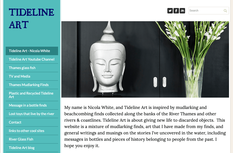 Nicola runs a great website devoted to mudlarking tideline finds in the tidal Thames, London, and art made from them. It is amazing what is found, and how often, by Nicola at low tide, as the tides move the mud around.